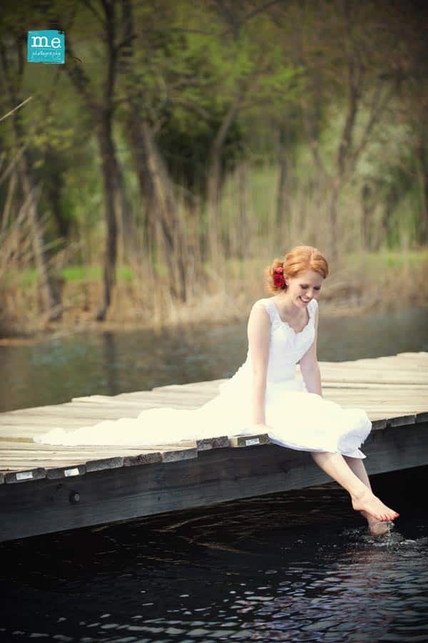 What a sweet and romantic shoot. I love the picture of the bride dipping her toes in the water. She looks delightfully happy!