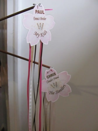 I also took an extra step and printed at-home name tags in the shape of a cherry blossom and laminated them.