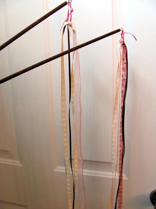 Step 6: Finally, tie any remaining ribbon anywhere between 2-6 pieces in your colors in the length you want to the loop.  I bought all of my ribbon on sale at Micheals for 50 cents per spool.