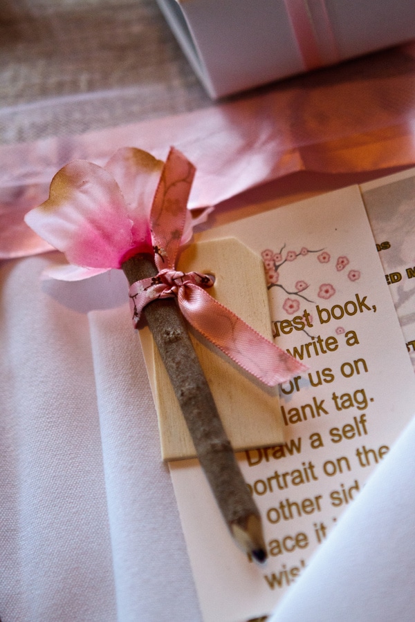 Emma’s DIY Centerpieces & Table Runners look so perfect on these long tables. They capture the the Cherry Blossom Theme so perfectly too!