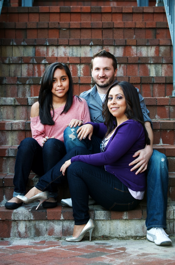 When I found out that Oleira and Scott met while working at Boeing, I instantly knew where I wanted to do their engagement session. I knew about the parks around Reagan National Airport where you can see the planes at an alarmingly close distance while they are taking off and landing and I had always wanted to go there for photos. And now, I had the perfect couple for it! We met up at Gravelly Point Park in Virginia, before heading over to Georgetown. Oleira’s daughter also joined us, which I loved, and we got some great photos of the soon-to-be-new family together!