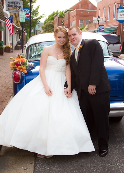 After the ceremony, Allie and Matt wandered around Easton for portraits, having been fortunate enough to plan their wedding on the same day as a major antique car show. The car owners were more than happy to let us use their vehicles as props and backdrops!