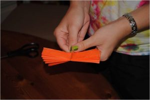Step 3: Cut an 18” piece of floral wire and the wrap it around your fan folded.