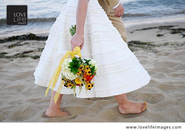 I love how Sabrina’s yellow toe nails pop in this picture! Barefoot brides for the win!