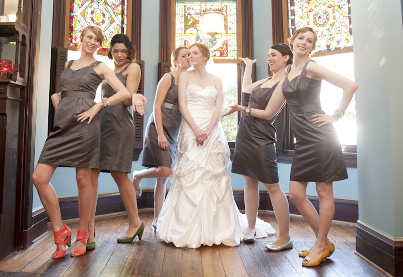 And finally, my favorite – mismatched bridesmaids with fantastically bright tights!