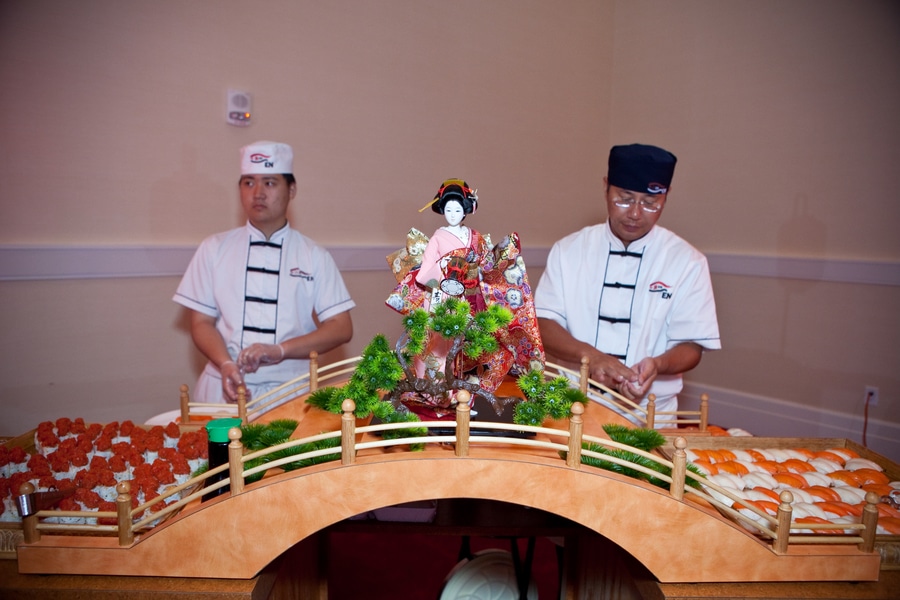I have no idea what a principal sponsor is, but it sounds very official! I am loving the boutonnieres, and now I know that I MUST have a sushi bar at my wedding!