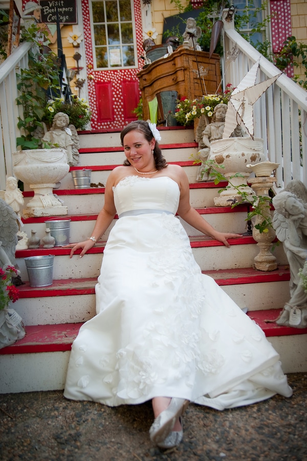 We currently live in Maryland with our ADORABLE calico cat Reese (who was in our engagement pictures with us). Kelly occasionally does blogs about locations she thinks would be/are great for photo shoots. I saw her piece on Lucketts and I had to jump all over that! I love all things vintage and thought it would just be a fun and unique setting for a Rock the Dress session (with husband too). It was definitely hot that day for us too, but we grinned and beared it, and we got some really good shots out of it!