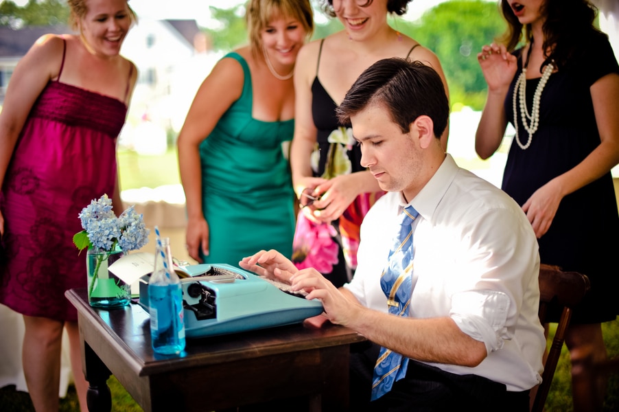 a typewriter guestbook! awesome. guests type a message to the happy couple.