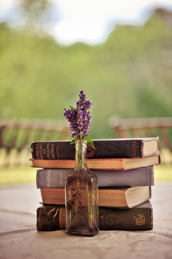 That hairpiece! And those shoes!! And I really love the stacked books as a centerpiece– so simple, but so sweet. Gorgeous wedding!
