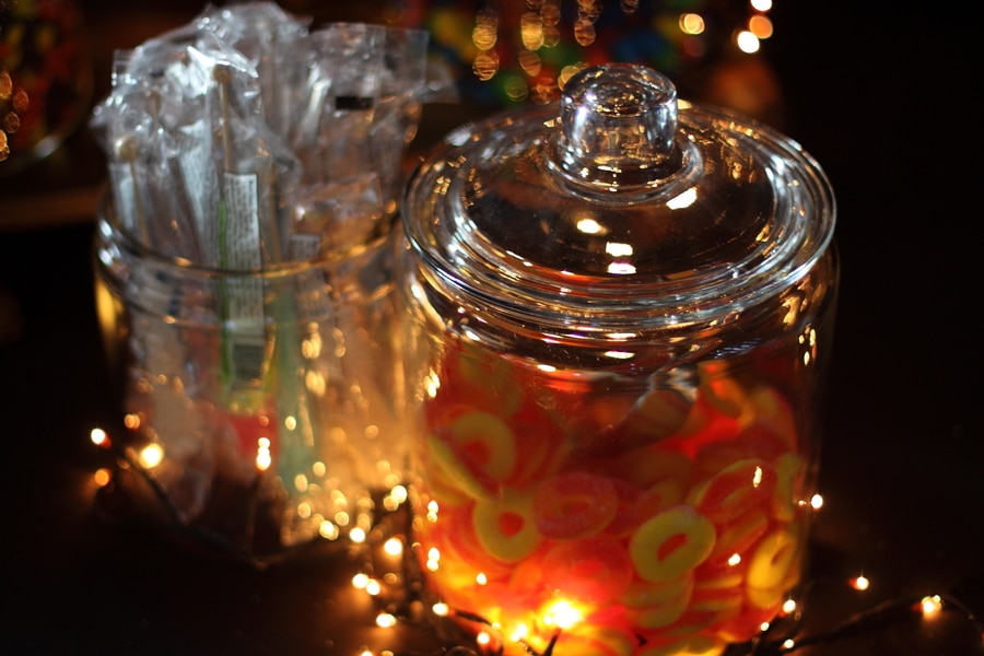 Ok, this DIY dessert spread is awesome. I LOVE how they put the white, Christmas lights interwoven between the glass jars. it looks SO cool!
