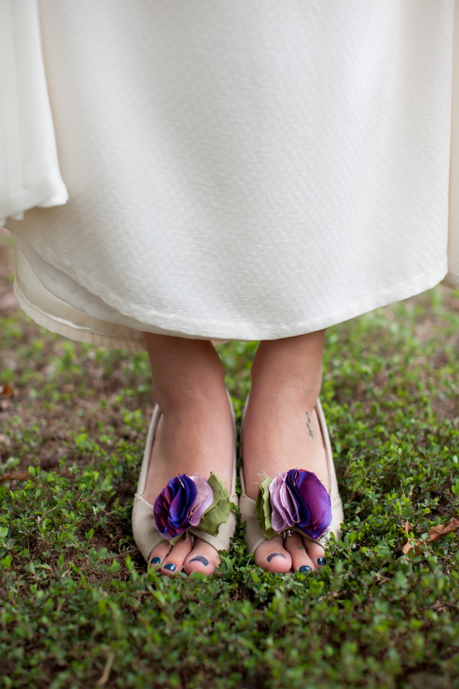 We got a few comments on our bride’s shoes from the Harry Potter Wedding Inspiration shoot. They were actually a combination of Blowfish shoes that I already owned, and DIY flower shoe clips, that Abby made from leftover fabric from the amazing floral hairpiece made by Zazzaretti Bridal.