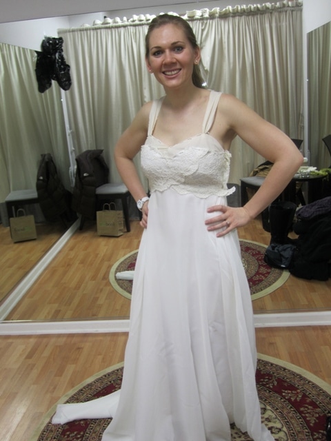 Round 2 of alterations … the seamstress worked to add straps to the dress and re-work the lace bodice to make it a bit fuller.