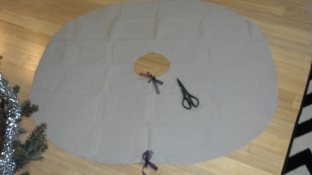 3. Then cut a straight line from the edge of the tree skirt to the center circle, so that you can get the skirt around your tree!