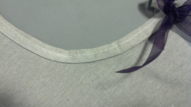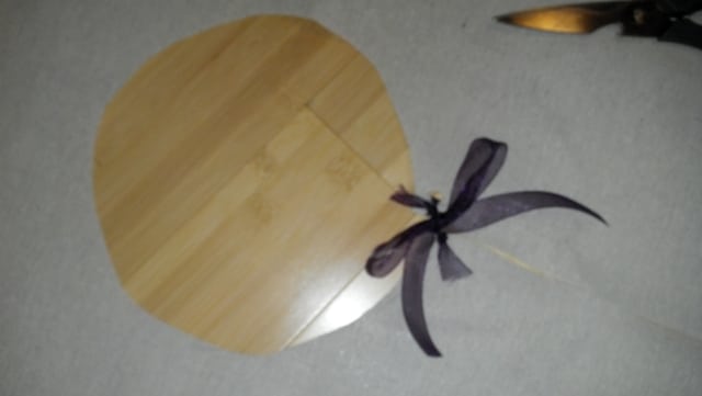 4. To make a fastener, I used two small slits and tied a ribbon strip in each slit at the top and base of the skirt. Then tie the ribbon into a bow to close the skirt.