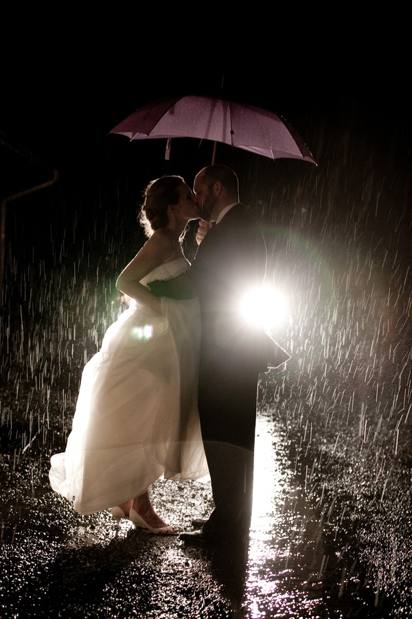 Erin is one of the most fun brides I’ve ever worked with! Our consultation, which usually lasts about 45 minutes, took at least twice that because we were gabbing half the time. Her wedding to Steve was also one of the few VERY small weddings I did this year — only about 16 people total. It was such an intimate affair, and the officiant got everyone who was there involved by passing around the rings. The ceremony was FULL of laughter, which made for a fun time and great pics :-) There are so many loving pictures between the two of them, but since Erin was dying to show off the spinning power of her dress, I took the two of them outside just before dark to get the shot of her spinning in front of the blue (soon to be storming) sky. Lastly, we ran out in the POURING rain to get one last shot before Erin & Steve headed off to their cottage at the Briar Patch Inn.