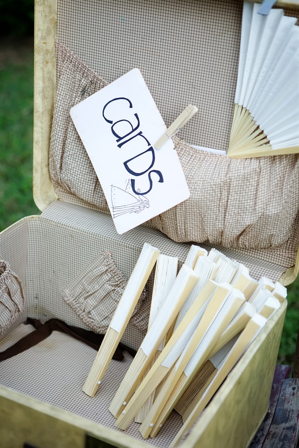 I love the vintage suitcase card box [learn to make a DIY Vintage Suitcase Card Holder here] … but I loved Katie & Andy’s even more when she told me that this suitcase was actually her grandpa’s!