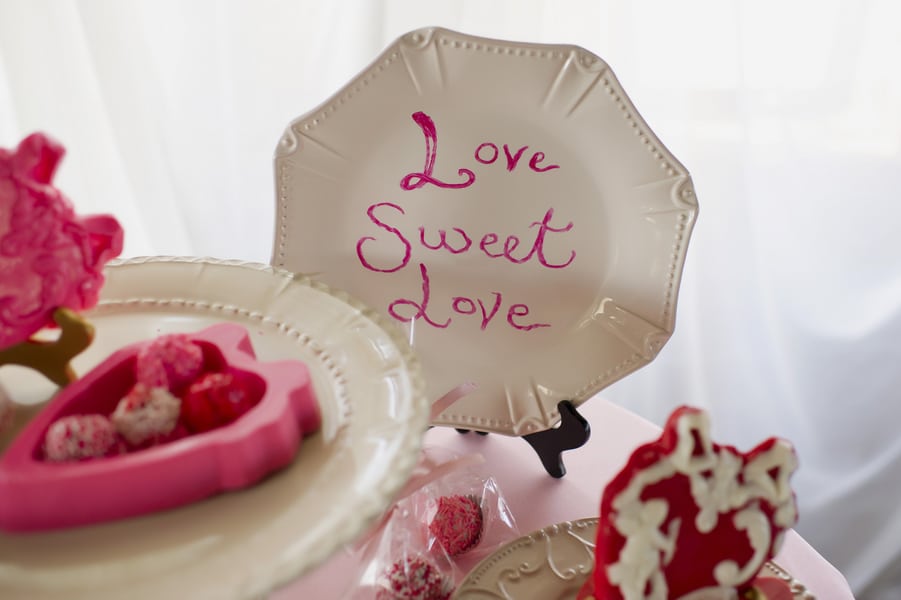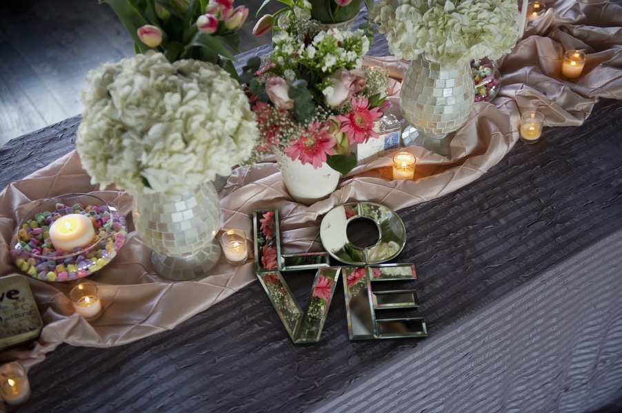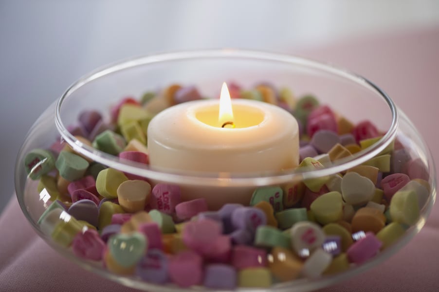 Love the idea of putting candy hearts in the lotus bowl for centerpieces!