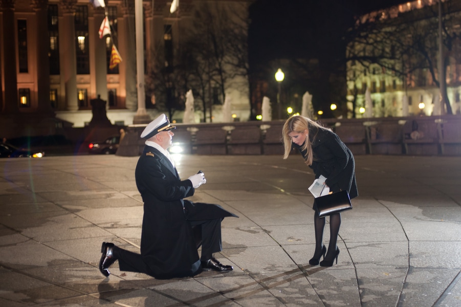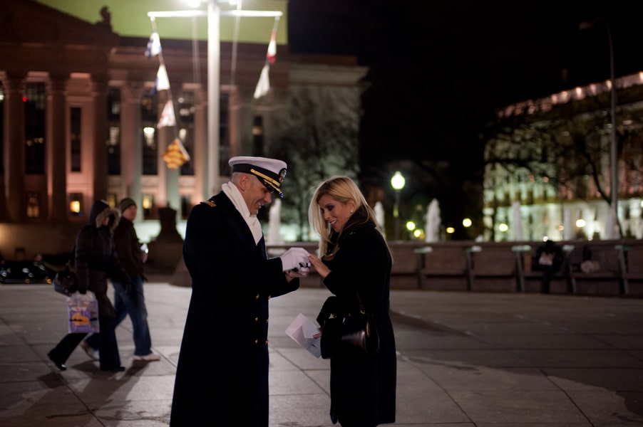 Click inside to see the rest of Doug’s surprise proposal to Jenny at the Navy Memorial in Washington, DC!
