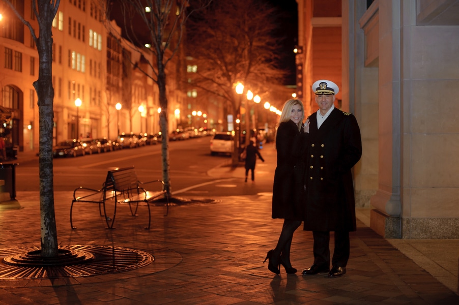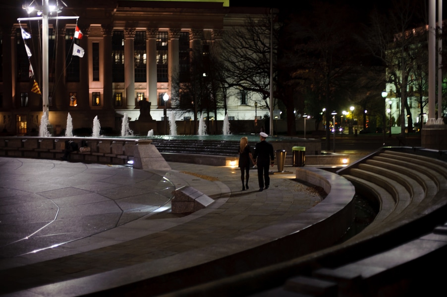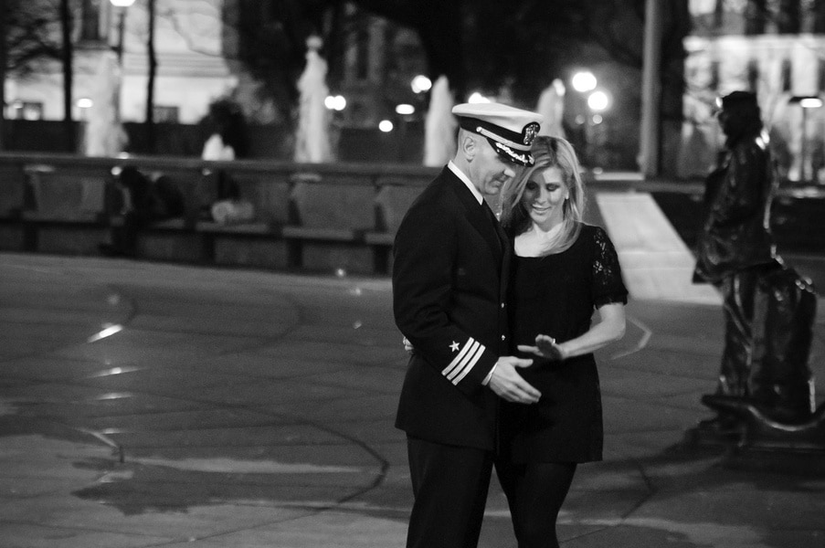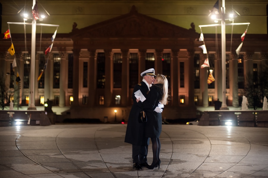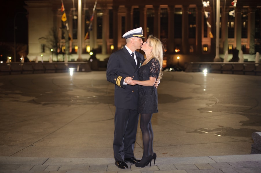 This past Thanksgiving holiday Doug proposed to Jenny. He had the whole even planned out, on how he was going to propose. He told Jenny he was obligated to a work dinner, so he got all dressed up in his Navy dress blues uniform and rented a town car to take them to dinner. He then instructed the car driver to drop them off at the Navy memorial in Washington DC, he and Jenny got out and just kinda walked around. She had no idea he was about to propose or that I was there to photograph the proposal!