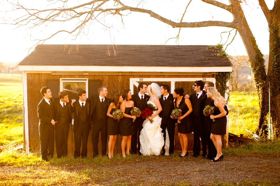 An “all black” dressed wedding party always seems to surprise me. You’d think it would be to monotone … but, I LOVE the way it looks here: