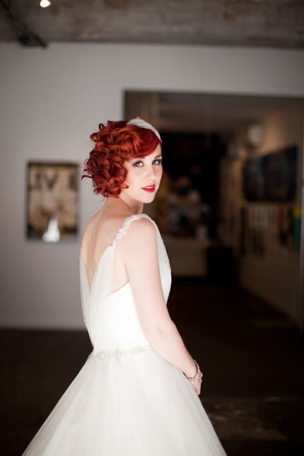 I’m not sure I can pick a favorite part of this look – I am always a sucker for bright red lips on brides, especially when the bride has bright red hair too. But I am also an absolute sucker for pin curls, and the way the vintage feather headpiece sits in the curls? I am just smitten.