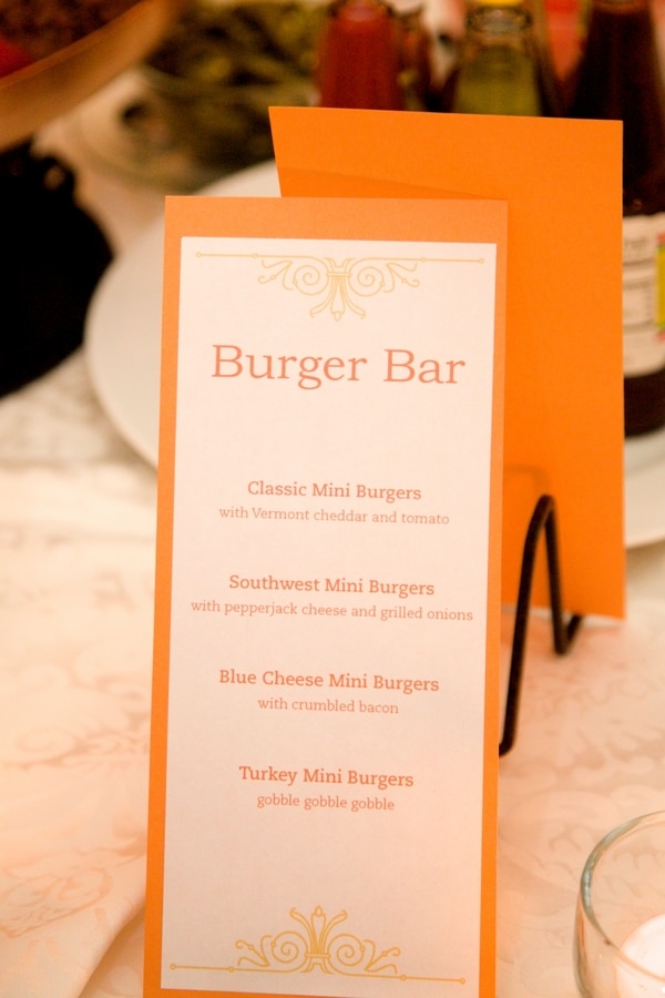 We opted for fun food bars, taco and cheese burgers, because we aren’t huge fans of traditional wedding fare and I LOVE TACOS!