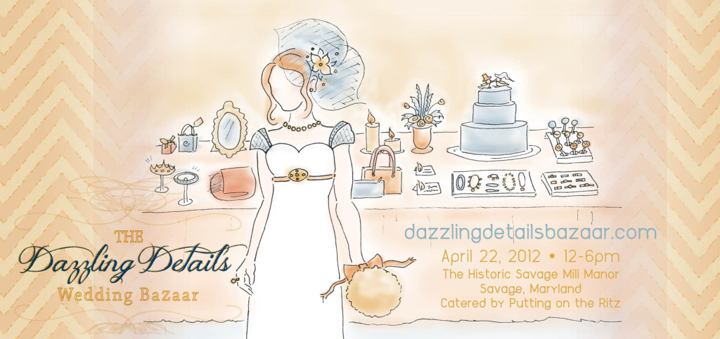 Dazzling Details is a the event where you can find all your wedding details in one location on one day. From your cake topper to your fascinator, favors and shoe accessories. We’ve brought them all under one roof for you. This event will take place on Sunday April 22, 2012 from 12pm to 6pm at The Historic Savage Manor located in Savage Maryland.