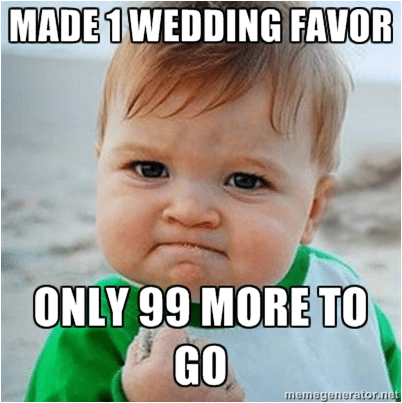 Obviously the time it takes to make DIY projects varies depending on the type of projects you have and the number of things you are making, but realistically, you need to take a look at your life prior to your wedding, and decide – will I really have time to make 150 favors by hand, stitch 12 table runners, make 50 programs, etc …