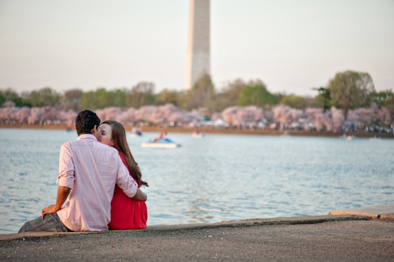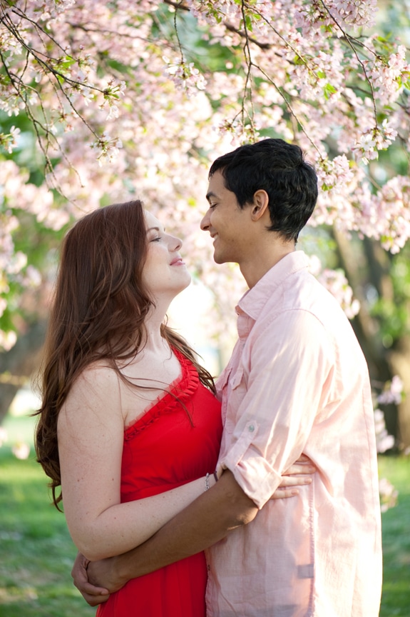 Her red dress and his pink shirt go really well with the blossoms. Beautiful!