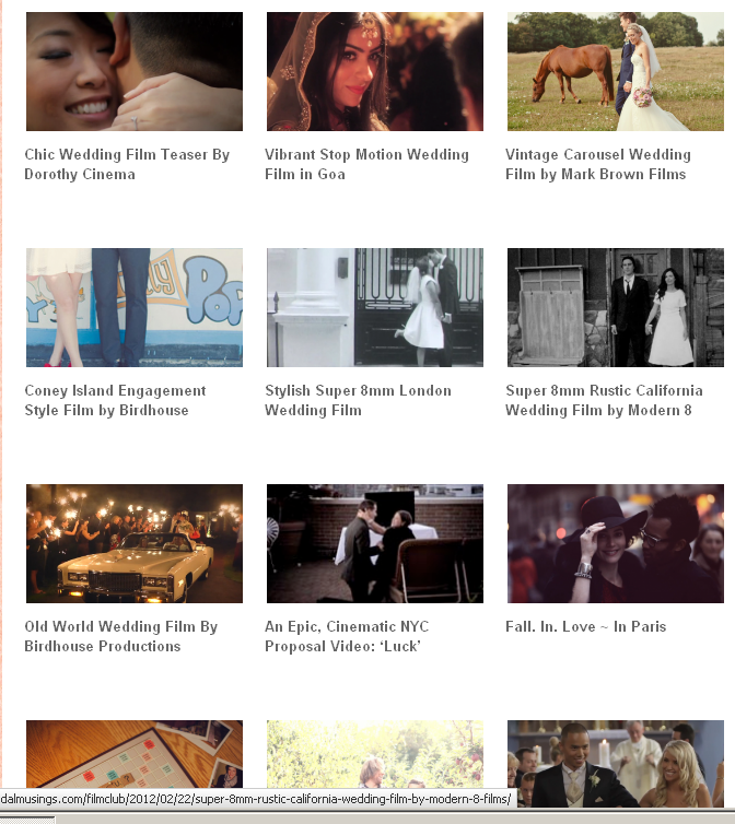 One of my favorite features on Bridal Musings, hands-down, is Film Club ~ a repository of featured wedding videos, engagement videos, & save the date videos. The wedding blog world is certainly not lacking in the wedding photography realm – but it seems SO much harder to find wedding videographers AND examples/inspiration of real wedding & save the date videos.