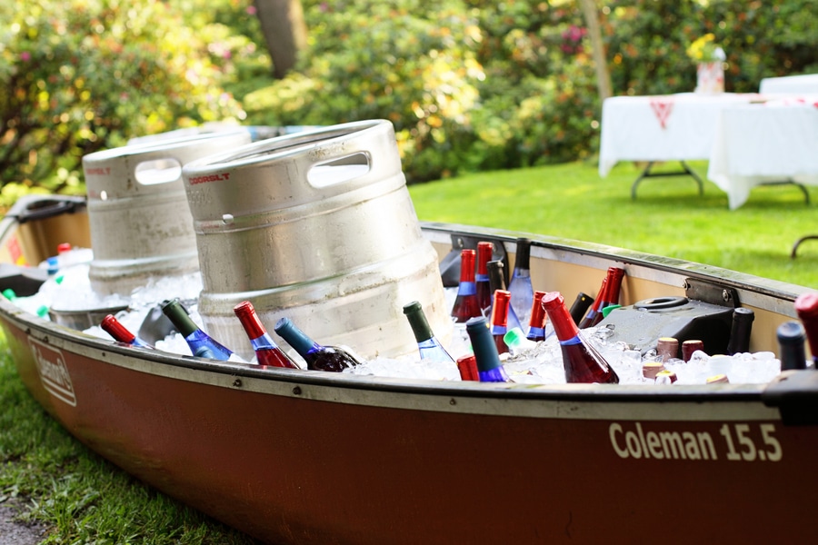 a super fun way to hold your drinks for a backyard wedding? put the kegs & win in a BOAT. love this!