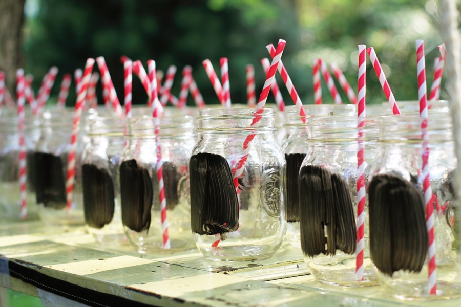 mason jars with chalkboard paint so guests can write their names on their cups!