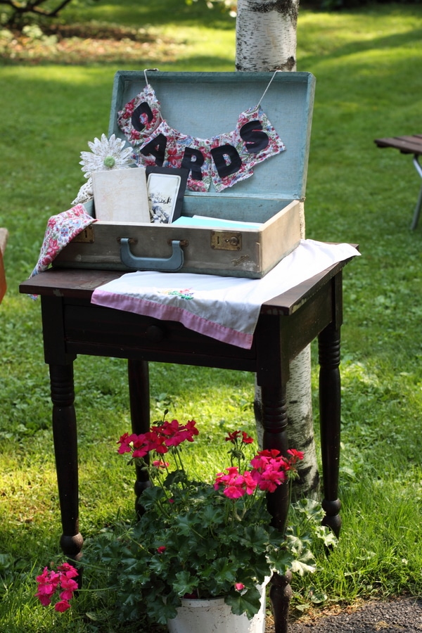 love this vintage suitcase cardbox [want to make one? Check our DIY Vintage Suitcase Card Box Tutorial here]