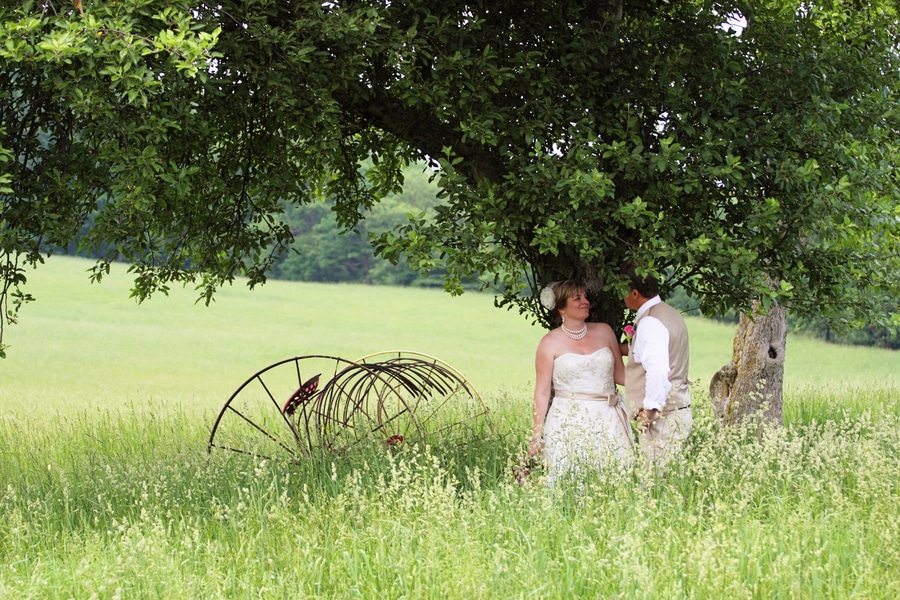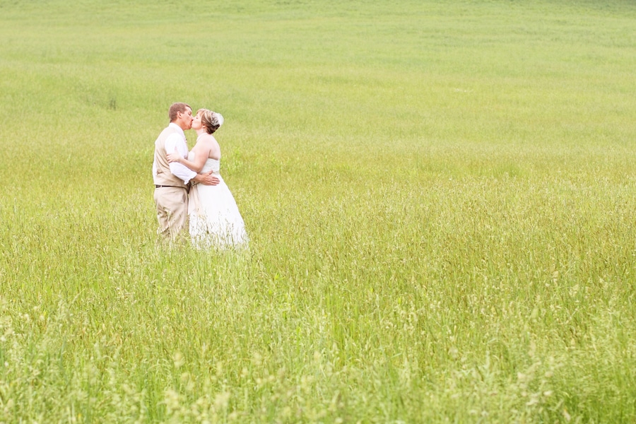 The reception had many amazing highlights including a visit from an ice cream truck and a game of kickball. The vintage/rustic theme rang true through every aspect of their wedding; from the vintage floor model radio that played music before the ceremony to the reception tables covered in quilts as tablecloths.