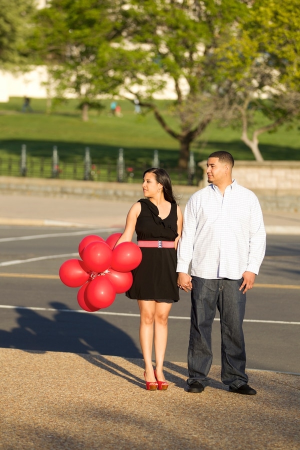 Olga & Nelson are HUGE baseballs fan – so what better place to have their engagement shoot than at a baseball stadium, donning their favorite team apparel! After some fun pictures at the stadium, the gorgeous couple changed clothes and headed to Capitol Hill to finish out there shoot!