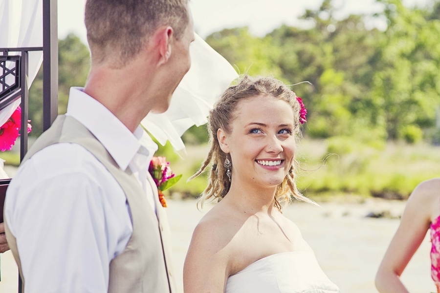 The groom’s dad owns a beautiful home right on the ocean in Elizabeth City, NC, so that served beautifully as the ceremony and reception venue for the big day.