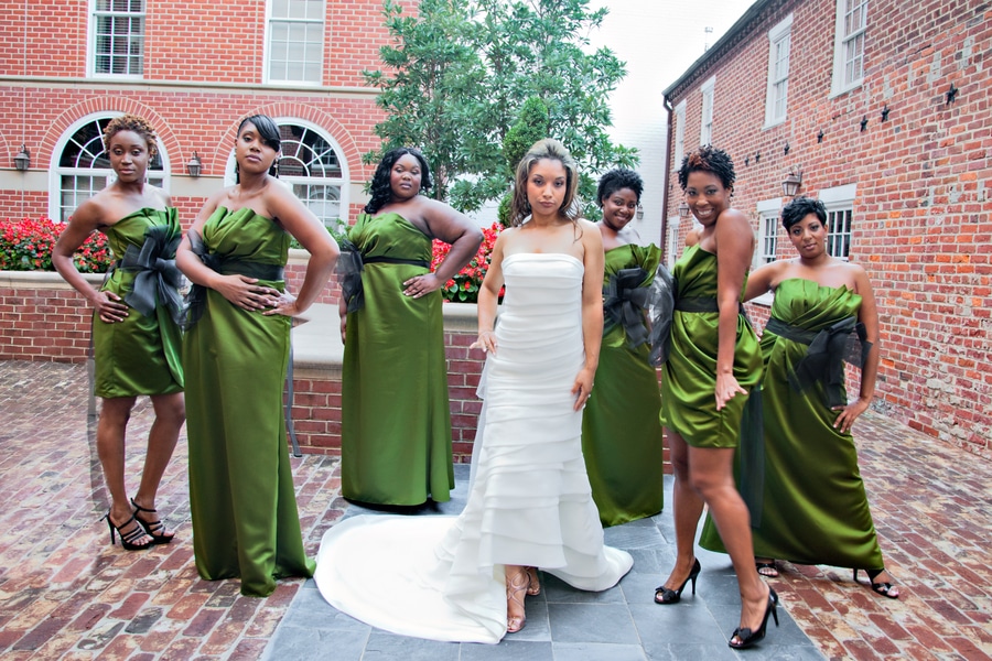 I am in LOVE with the huge black bows on the green bridesmaids dresses. SO freakin’ stylish!