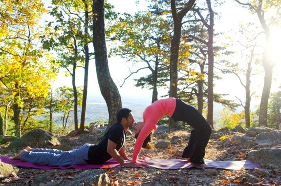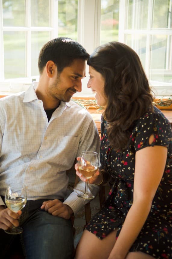 Lindsay & Gaurav are set to get married September 2013, so we got some engagement photos this fall before the leaves fell off the trees. In talks with the couple, I discovered they both loved wine and yoga. We decided to incorporate both of their favorite activities into the engagement session – using the vineyard and mountain where they got engaged as a backdrop.