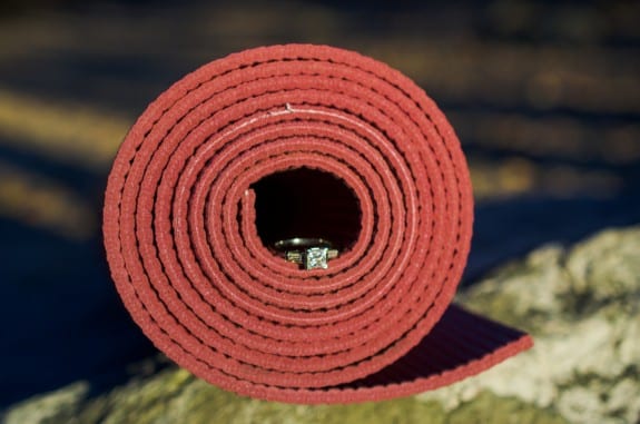 We are back with a beautiful Maryland engagement session by Michelle Zahn Photography [submitted via Two Bright Lights]. This adorable couple took to a beautiful winery, on Sugarloaf Mountain in Maryland for their engagement session. They snapped photos with some wine and amid the beautiful fall foliage, but I think my favorite part of this engagement session was when the couple practiced some yoga on the top of the mountain!