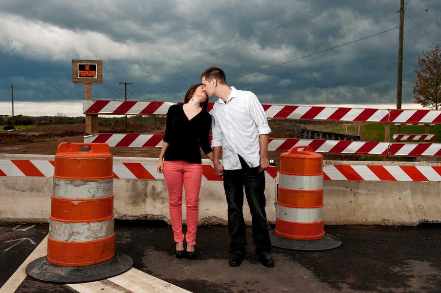 We had been having lots of storms and bad weather and had to reschedule the session several times. Between the couple’s work schedule and mother nature, we were having a difficult time making it happen. On the third reschedule, the weather, once again, looked questionable. We were able to delay it by a few hours, missing the rain, but getting a great dramatic sky. We were just finishing as the rain started again! Success!