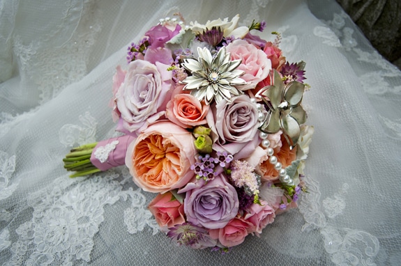 My bouquet included brooches and pins that had belonged to my paternal grandmother who passed in 2005. I was thrilled that sentimental items from their lives could be included in the most special day of mine.