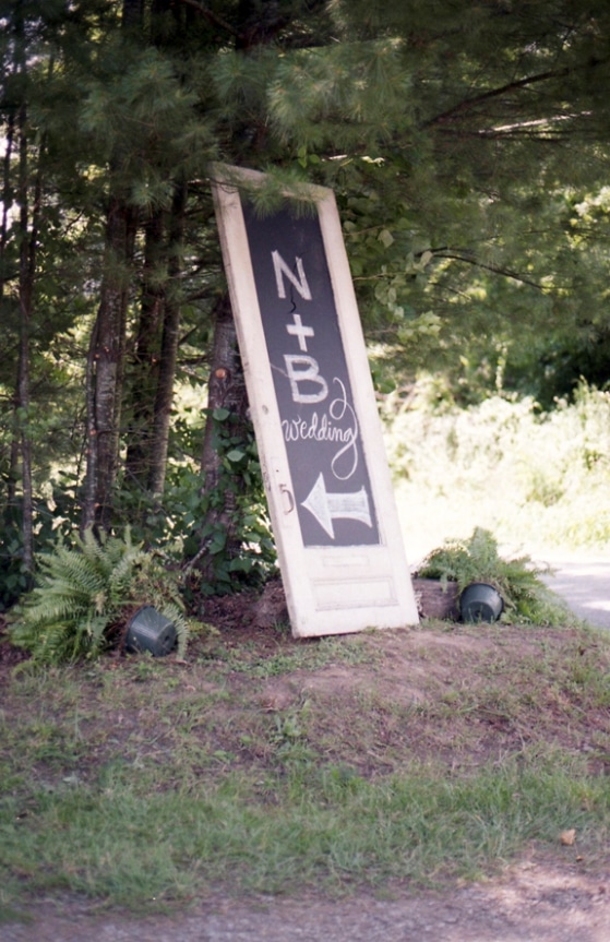We wanted to make our day organic, personal, and gorgeous but had a limited budget, so it was a natural choice to have the ceremony on top of a hill with a beautiful Blue Ridge Mountain view that has been family land for generations. I really wanted to have a defined ceremony space and a grand entrance for walking down the aisle, which is hard to do in an outdoor setting, so my grandpa, great-uncle, and brothers built an entry to the ceremony area out of reclaimed wood from a barn that fell and swinging doors we found while renovating the reception space.