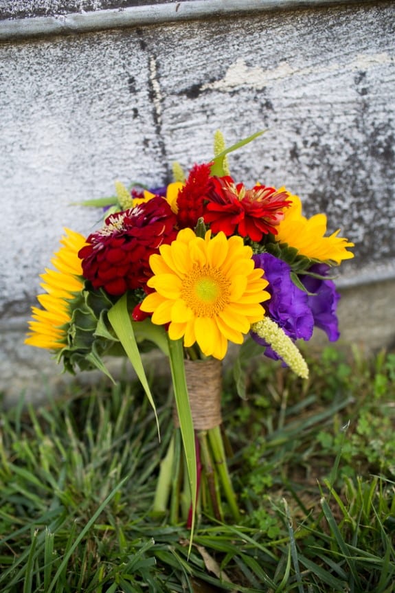 The fun part in all of this was colors! I had no idea how everything would look until the day of so to see the pictures and to see how the colors worked were amazing! Ellen’s local Flowers had a huge impact on how the centerpieces and the bouquets turned out! The only flower I picked out were the sunflowers and I was very fortunate enough that they were in season! The rest, Ellen had picked out based upon the colors of the dresses and suits. Since the venue had that beautiful rustic feel to it, I didn’t want to dim it down with whites and neutral colors, so the sunflowers were a great pop color to each table.