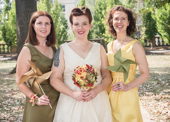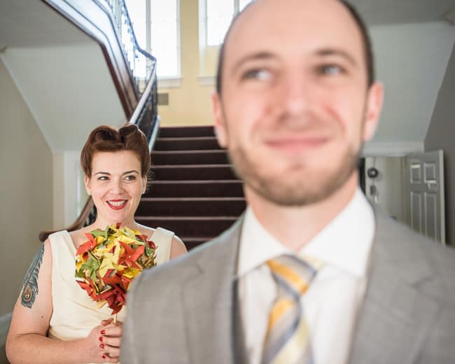 Annie’s favorite moment: My favorite moment was probably walking up the stairs together after the ceremony, and walking into the reception room set up, with our friends and family there. The tables were set with the centerpieces we had grown, and the pinwheels I made, and suddenly the product of all of this work was right before us, and it looked amazing. It sounds corny, but it really was how I had pictured it.