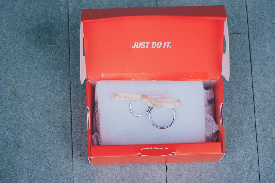 They had a Nike-themed ring box to represent where they both currently work and how they met.