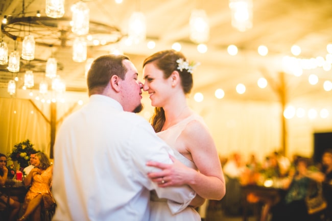 Photography: Porter Watkins Photography | Venue: Fat Cat Farm | Flowers & Decor: Beehive Events | Food: BBQ Connection | Music: Morwenna Lasko & Jay Pun | Beer: Locally brewed by a friend | Bridesmaids Dresses: Handmade by bride’s sister | Favors: BBQ Sauce from caterer | Wedding Cake & Cupcakes: Sweethaus