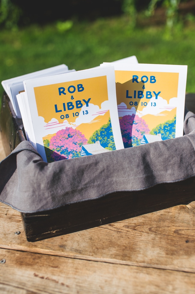When you’re on the Blue Ridge Parkway, the natural beauty of the surrounding mountains and farmland is enough to make you feel like you’re in a different world, yet there’s something about the timeless graphics and unique, nostalgic signage along the way tie the whole experience together. We wanted to bring the same kind of character to our wedding, letting the natural beauty of our rustic venue speak for itself while paying homage to the modern graphic detailing found along the parkway in our own signage and print materials. We really tried to balance natural with simple.