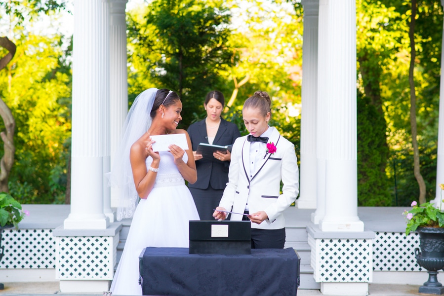 modern same sex maryland wedding mistmatched black bridesmaids dresses modern same sex maryland wedding