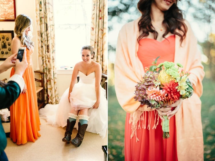 bride groom farm boots personalized rustic DIY murray hill weddingorange wedding details ring bearer mismatched orange palette bridesmaids dresses stunning barn wedding washington dc murray hill