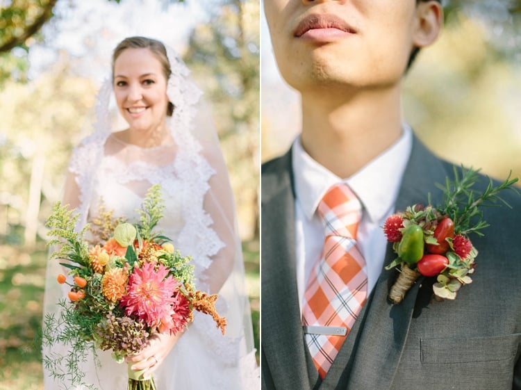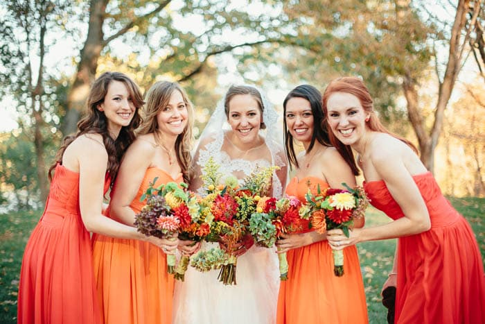 orange bridesmaids dress wildflower bouquet rustic orange bouquet boutonniere